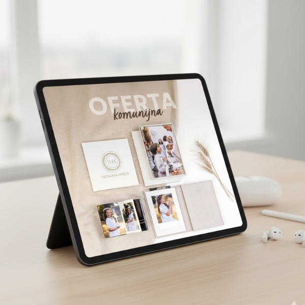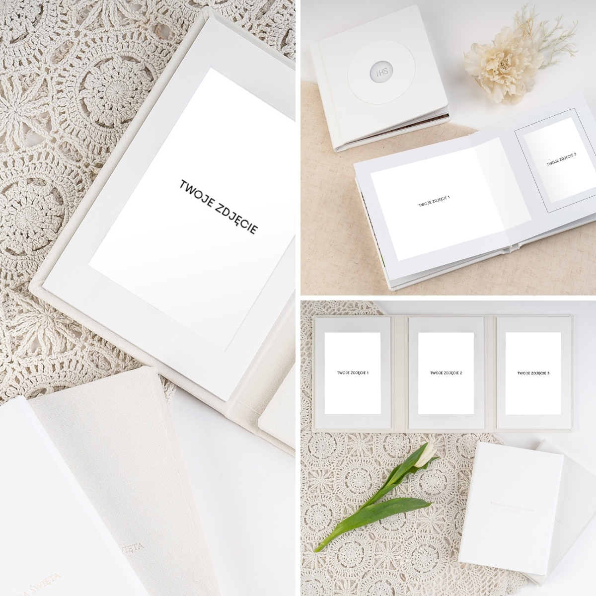 - Makiety produktów komunijnych - darmowe pliki do tworzenia profesjonalnych wizualizacji z własnymi zdjęciami. W kilka minut pokażesz klientom, jak mogą wyglądać fotoprodukty z ich sesji i wzmocnisz swoją ofertę w sezonie komunijnym.