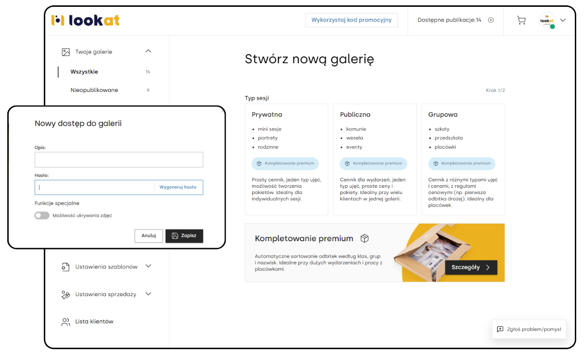 Sprzedaż odbitek to nieodłączny element fotografii komunijnej. Kluczowe jest jednak to, w jaki sposób ten proces jest zorganizowany - zarówno po stronie klientów, jak i fotografa. W LookAt sprzedaż odbitek odbywa się bezpośrednio z poziomu galerii.