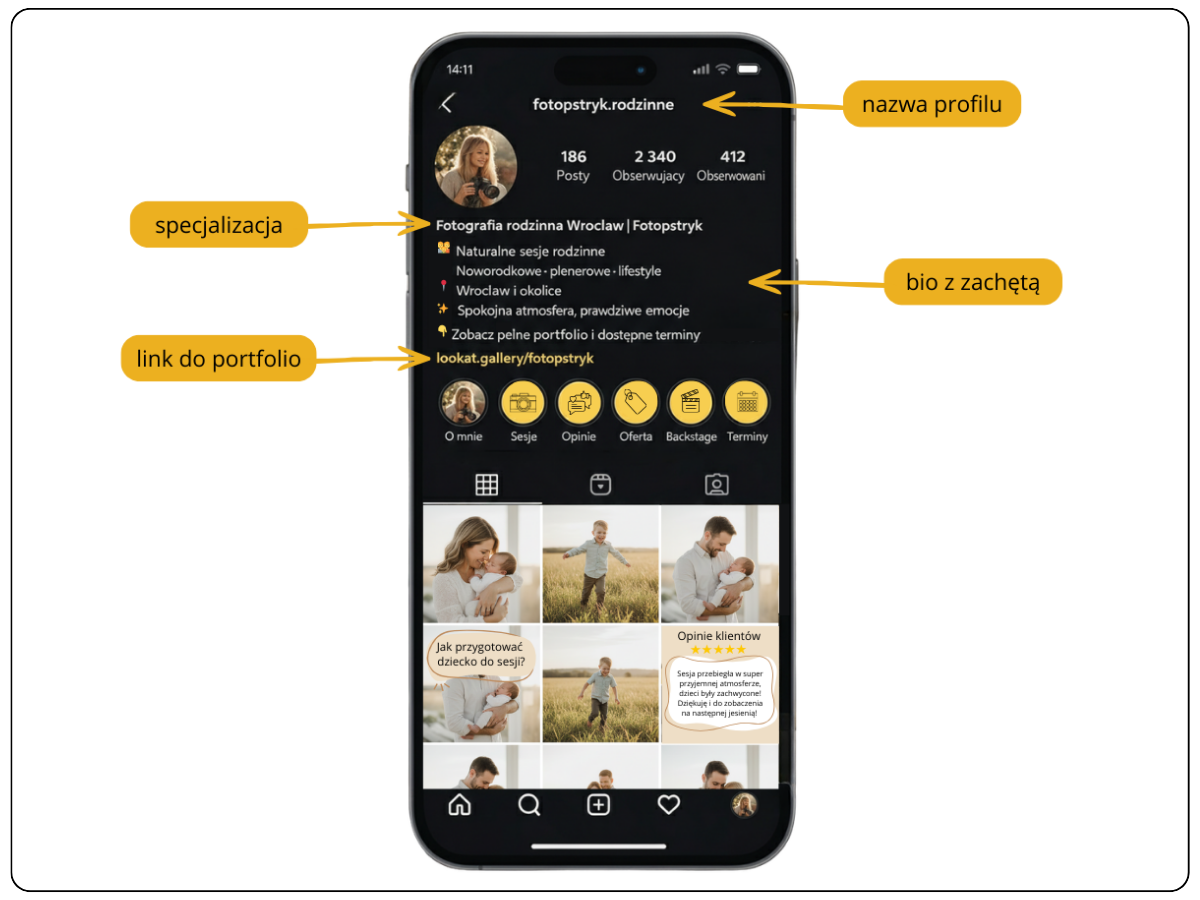 Nazwa profilu powinna być łatwa do zapamiętania i jednoznacznie kojarzyć się z fotografią. W opisie profilu warto jasno określić specjalizację, na przykład fotografia ślubna, sesje rodzinne lub fotografia biznesowa.