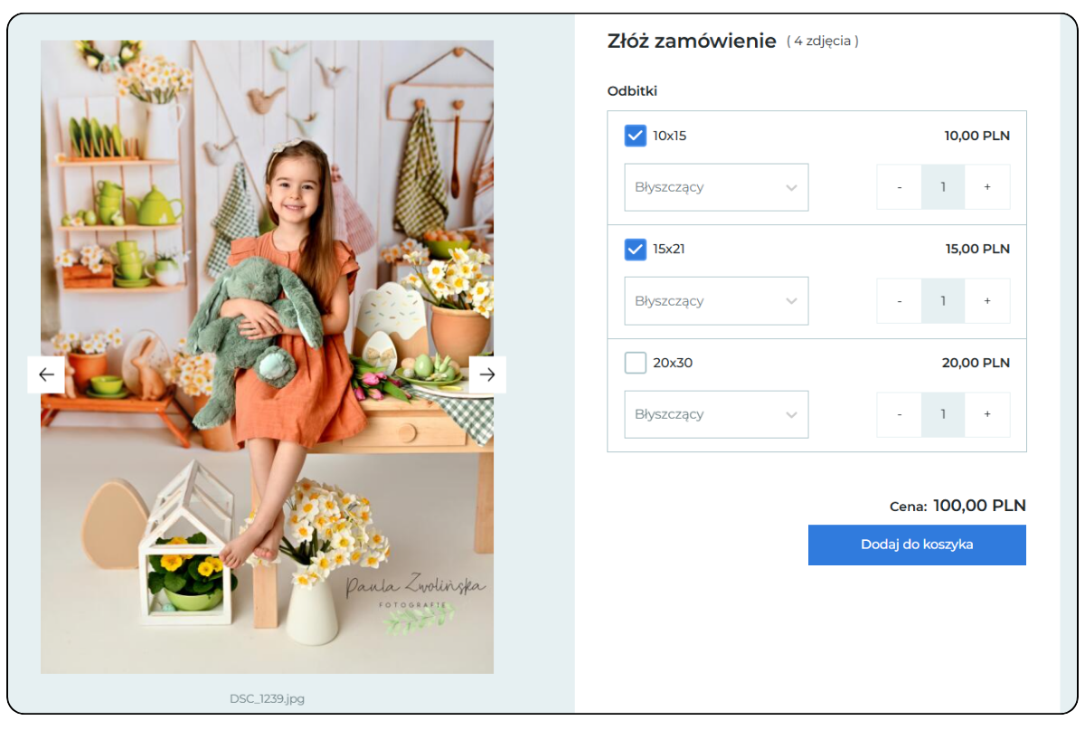 Integracja z nPhoto sprawia, że realizacja zamówień odbywa się bez konieczności ręcznego przygotowywania plików. Taki model pracy znacząco podnosi standard obsługi i wpływa na pozytywny odbiór fotografa.